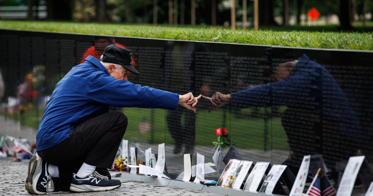 A man touches a name etched into the Vietnam Veterans Memorial on Memorial Day on May 26, 2025 in Washington, D.C. Samuel Corum / Getty Images