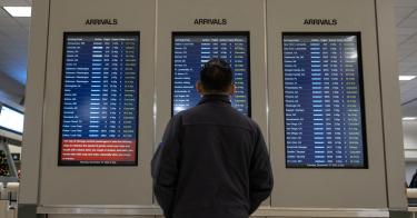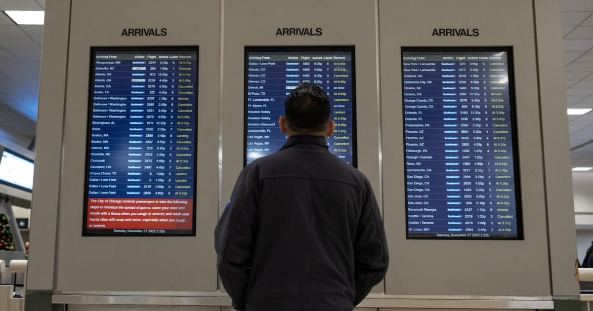 A man looks at the arrival board in the baggage claim area at Midway Airport on December 27, 2022 in Chicago, Illinois. Jim Vondruska / Getty Images