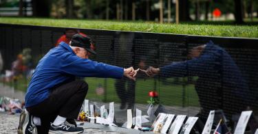 A man touches a name etched into the Vietnam Veterans Memorial on Memorial Day on May 26, 2025 in Washington, D.C. Samuel Corum / Getty Images